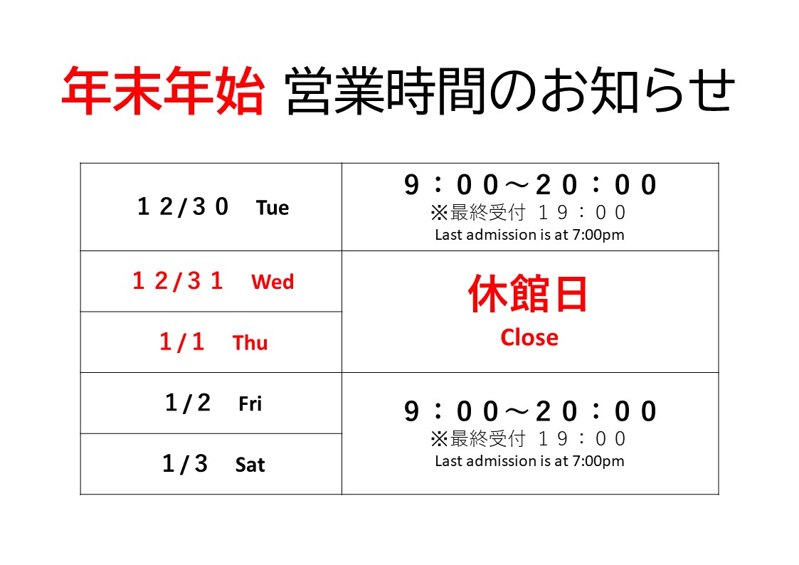 年末年始営業時間のお知らせ